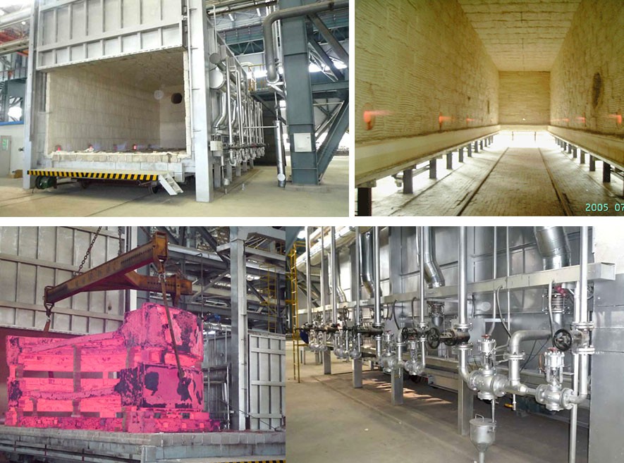 臺車耐火砌體采用高鋁定型磚結構,爐車與爐襯的密封采用自動壓緊結構。側密封的開、閉與爐車進出連鎖。